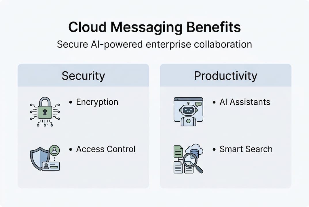 Enterprises adopt cloud messaging for three core reasons: security, reliability, and scale. Cloud providers invest heavily in encryption, compliance certifications, and redundant infrastructure that most in-house IT teams simply can't match. If you want a deeper look at how these platforms fit into the broader enterprise stack, the enterprise messaging guide covers the full landscape.