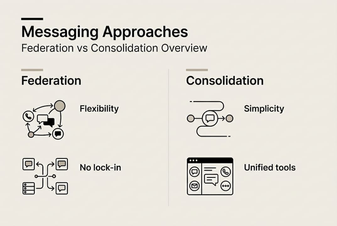 This is where many enterprise deployments get complicated. Do you consolidate all communication onto a single platform, or do you federate across multiple tools? Both approaches have real trade-offs.