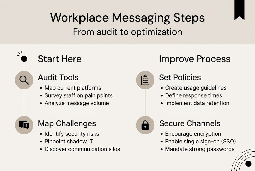 Pro Tip: Run a one-week messaging audit before making any platform or policy changes. Ask five people from different departments to log every tool they use and every time they can't find information they need. The patterns will tell you exactly where to start.