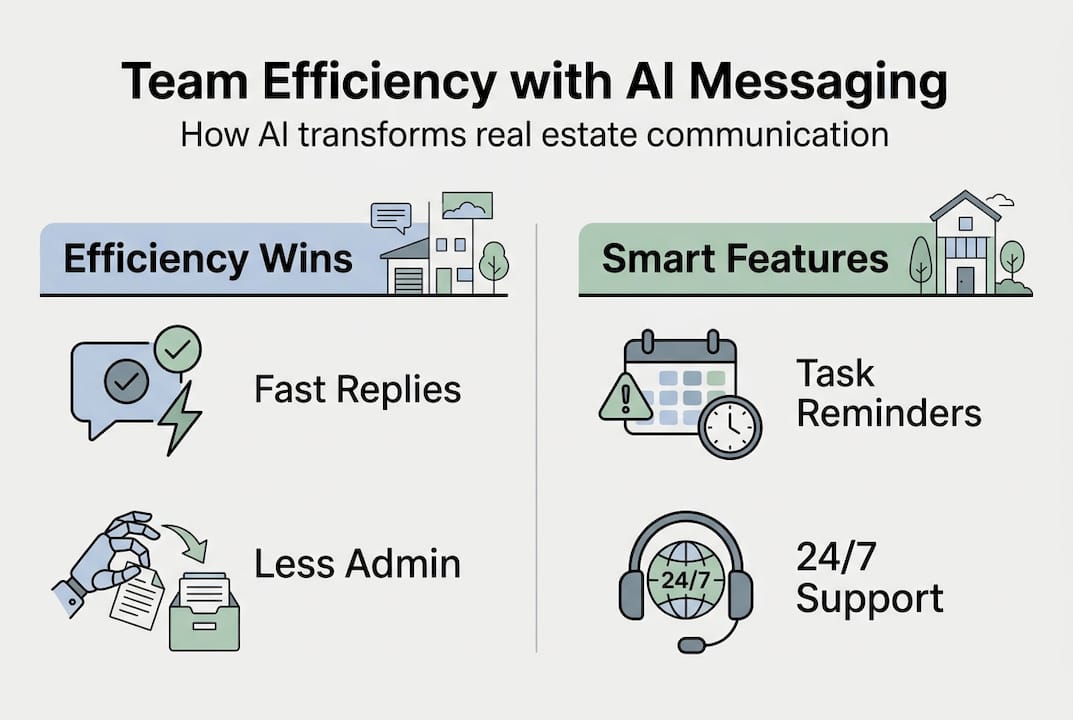 Security protects your firm. AI-powered messaging accelerates it. For large real estate operations managing dozens of listings, hundreds of tenants, and multiple agent teams, manual communication quickly becomes a bottleneck. AI changes that equation dramatically.