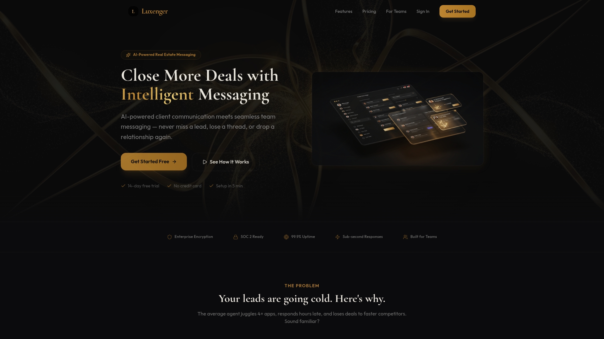 | Luxenger | AI-powered client responses <br> Lead nurture automation <br> Unified inbox with enterprise security | Effective lead follow-up <br> Mobile-friendly notifications <br> High security | Paid plans start at $49/month <br> Learning curve for adoption | Free tier available <br> Paid plans: $49/month for agents, $149/month for teams, $395/month for brokerages |