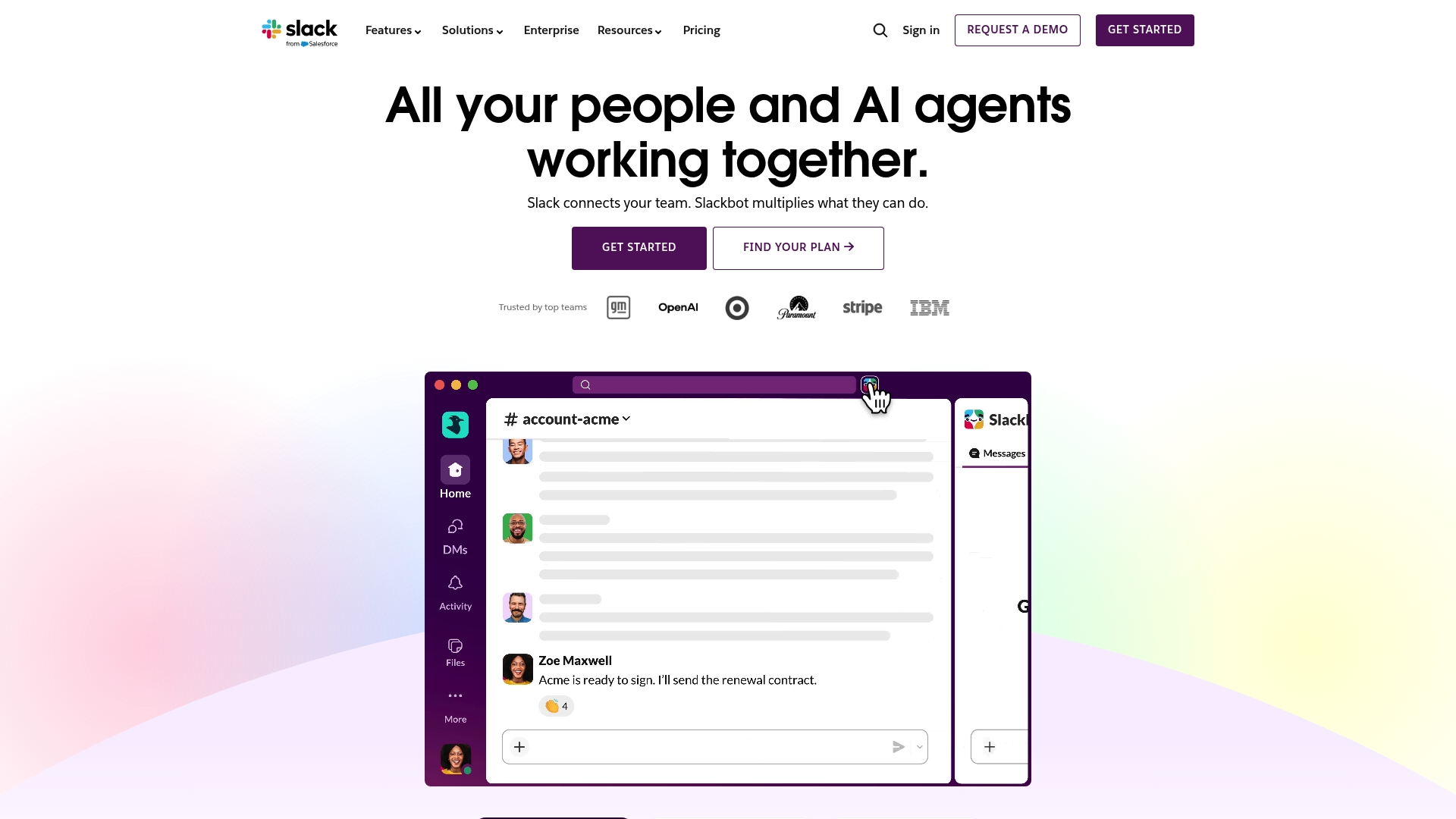 Slack combines persistent conversation channels with embedded AI and a broad app ecosystem to reduce context switching. That mix helps teams keep work visible, automate routine tasks with Workflow Builder, and leverage AI for faster decision making.